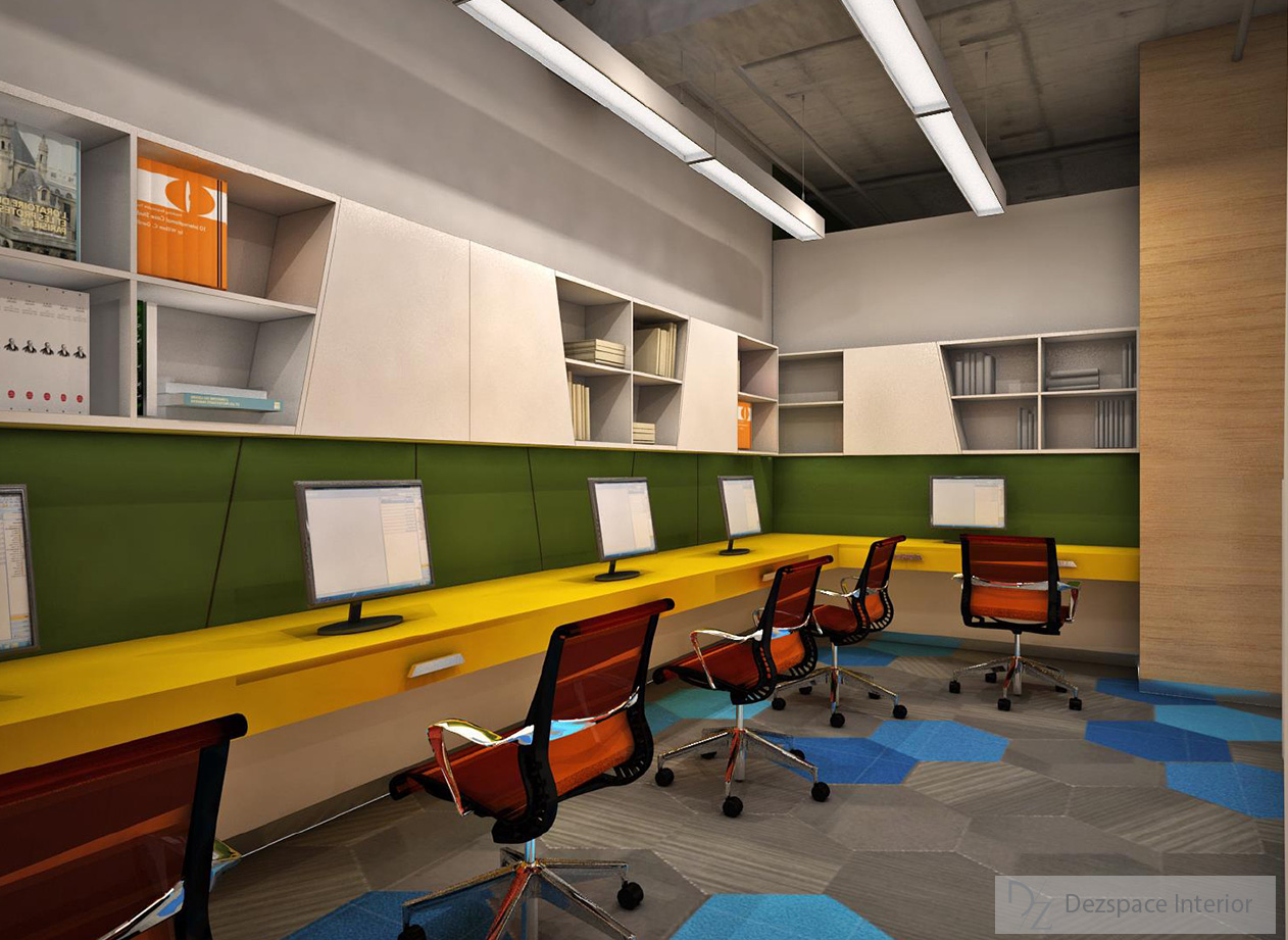 Reception area is always a busy place we have designed it with bright color so that they can feel warm and bright color helps one to create a mood and evoke memories.An open ceiling was used to illustrate the dynamicity and solutions created by start-ups. This also aims to further enhance a sense of community and teamwork throughout the open areas..
